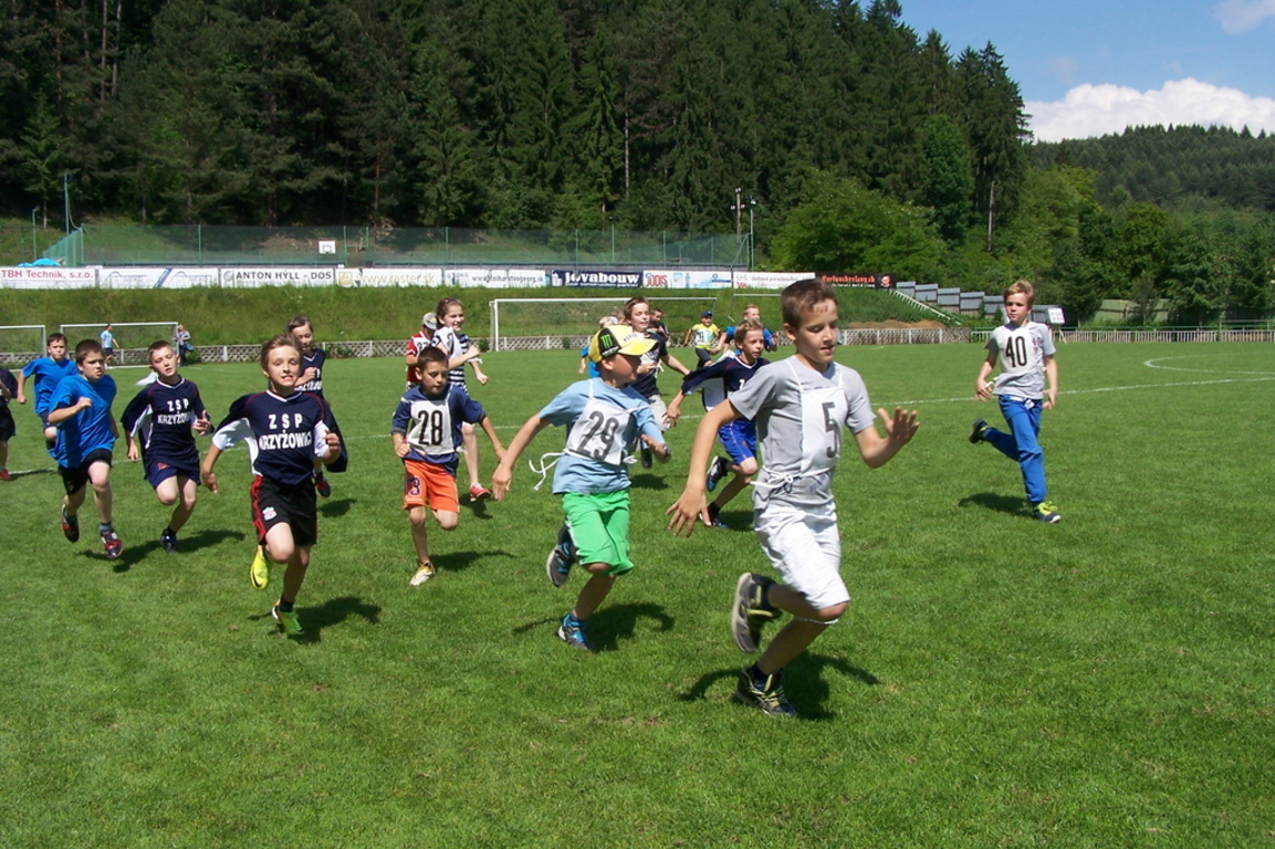 Uczniowie i nauczyciele naszej szkoły pojechali do partnerskiej szkoły w Tepliczce nad Wagiem. Jak zwykle spotkali się z miłym przyjęciem i gościnnością. Zostali zaproszeni na wycieczkę do zamku Streczno, położonego na urwistym brzegu rzeki Wag. Miła pani przewodniczka zwróciła uwagę na ciekawe miejsca, między innymi pokazała średniowieczną „lodówkę” – ośmiometrowe zagłębienie, w którym przechowywano pokarmy. Po powrocie do Tepliczki krzyżowiczanie wzięli udział w uroczystym otwarciu Olimpijskiego Festiwalu Dzieci i Młodzieży. Zapalono znicz i złożono ślubowanie, a następnie przystąpiono do zawodów. Uczniowie biegali na różnych dystansach, grali w piłkę nożną, badmintona oraz strzelali z łuku. Z Tepliczki przywieźli do szkoły puchar, wiele medali, a także dobre wspomnienia. Wszyscy wrócili zadowoleni i z nadzieją na kolejne spotkania z koleżankami i kolegami ze Słowacji.
