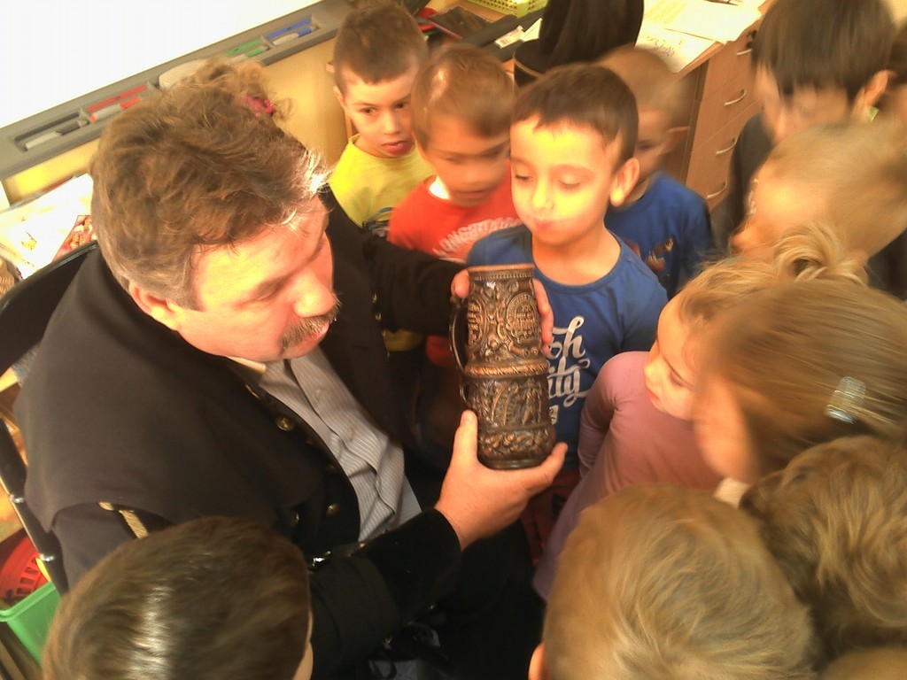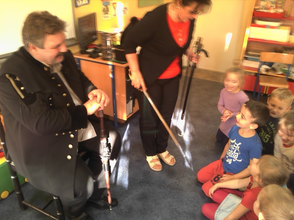 Dzisiaj gościliśmy pana górnika, miał piękny mundur i czapkę z piórami.