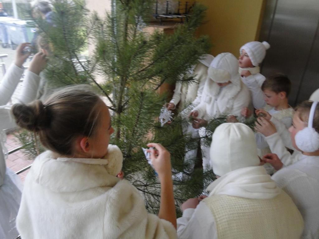 17 grudnia uczniowie klasy 6 odwiedzili pensjonariuszy krzyżowickiego Archidiecezjalnego Domu Opieki Paliatywnej. Dzieci wystąpiły z zimowym repertuarem świątecznych piosenek. Każdy z pensjonariuszy otrzymał wykonany przez uczniów upominek. Przywieźliśmy także żywą choinkę, którą podarował nam leśniczy – Pan Sławomir Grochowski. Dzieci przystroiły ja ozdobami wykonanymi pod okiem nauczyciela techniki - pani Iwony Spandel – Barańskiej. Podziękowania należą się także pani Bogusławie Styrnol, panu Krzysztofowi Szewczykowi i pani Brygidzie Miszczyk za pomoc w organizacji wyjazdu. Całość była koordynowana przez wychowawcę klasy 6 – panią Justynę Zawieruchę.