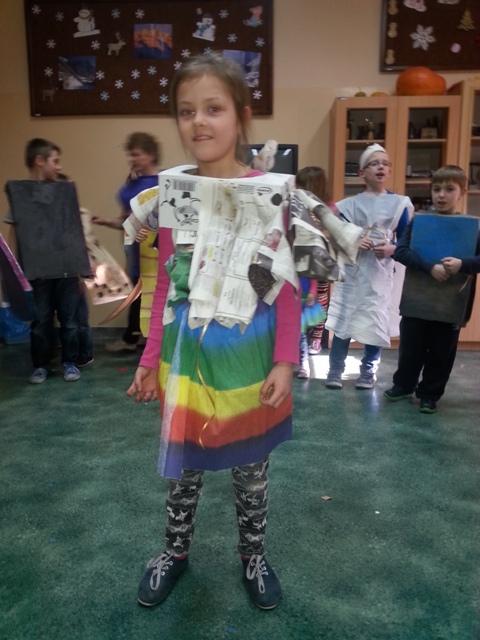 Na zakończenie karnawału w świetlicy szkolnej odbył się wyjątkowy bal- papierowy. Uczestnicy tego balu ubrani byli w ekologiczne stroje, wykonane własnoręcznie z papieru. Większość dzieci przygotowywało się do tego wydarzenia już od dłuższego czasu, podczas zajęć świetlicowych projektując, wycinając, malując wymyślone przez siebie stroje.