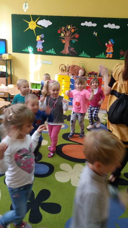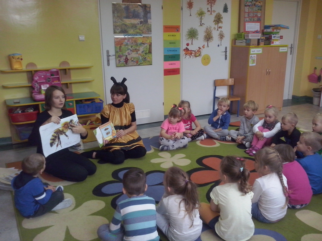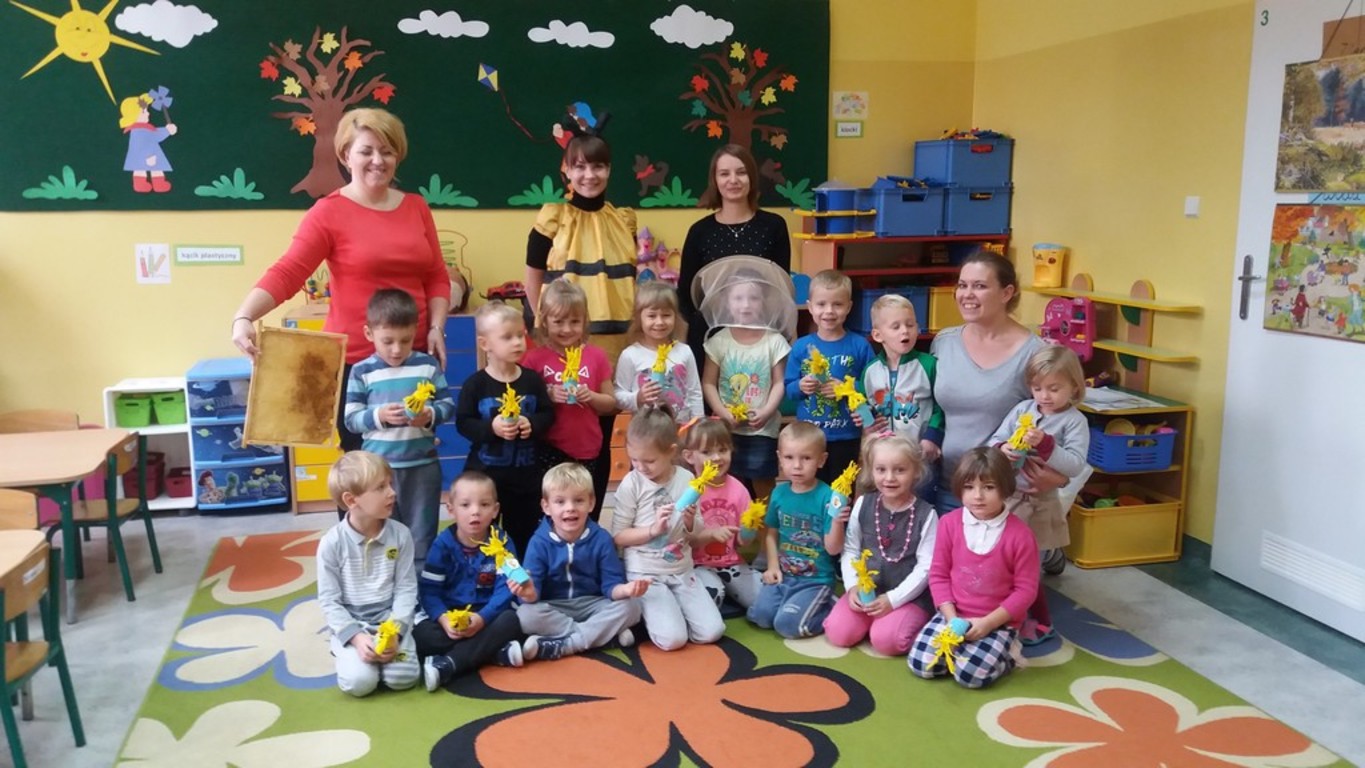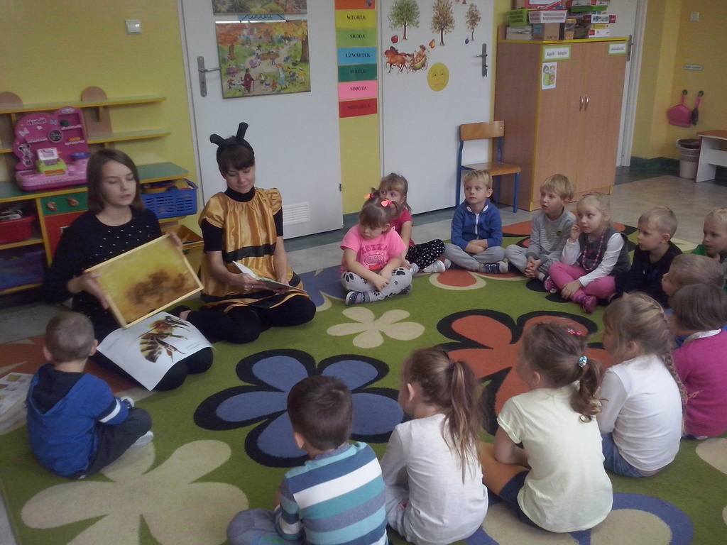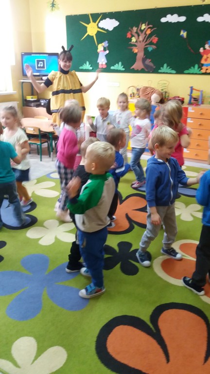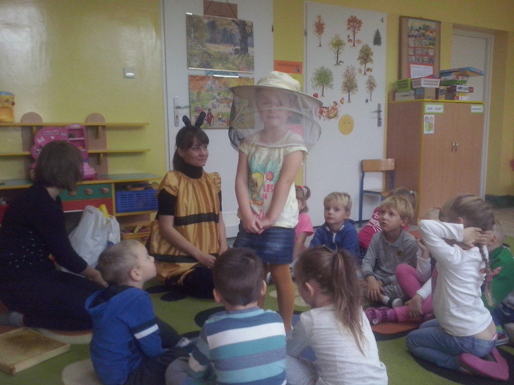 W ramach współpracy z Biblioteką Publiczną, 24 października odwiedziła nas Pszczółka Maja. Opowiedziała nam o zawodzie pszczelarza i zwyczajach pszczół. Największą atrakcją dla dzieci był słodki miodek. Panie zaprosiły dzieci do odwiedzania biblioteki i czytania książek.