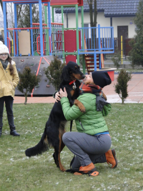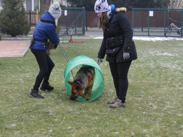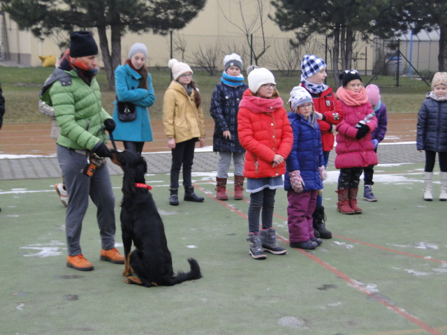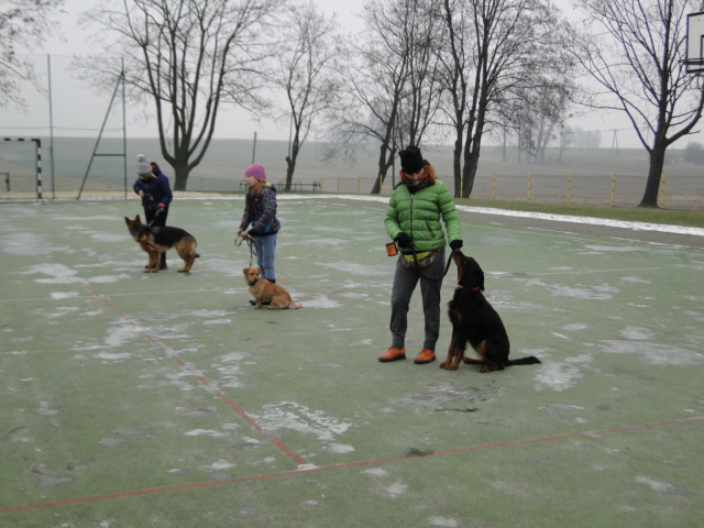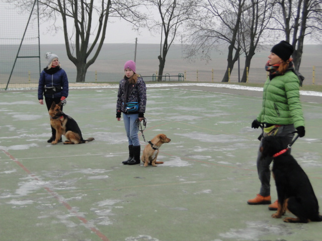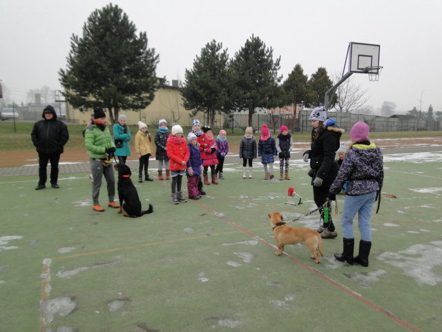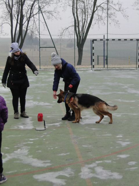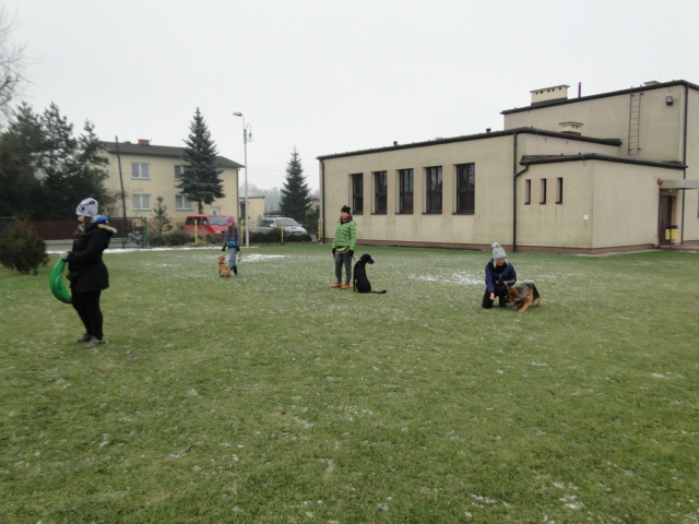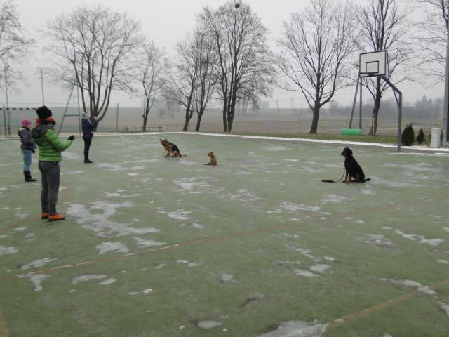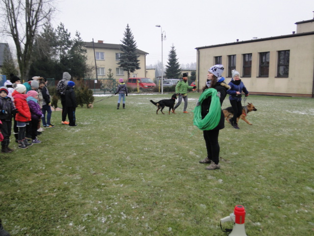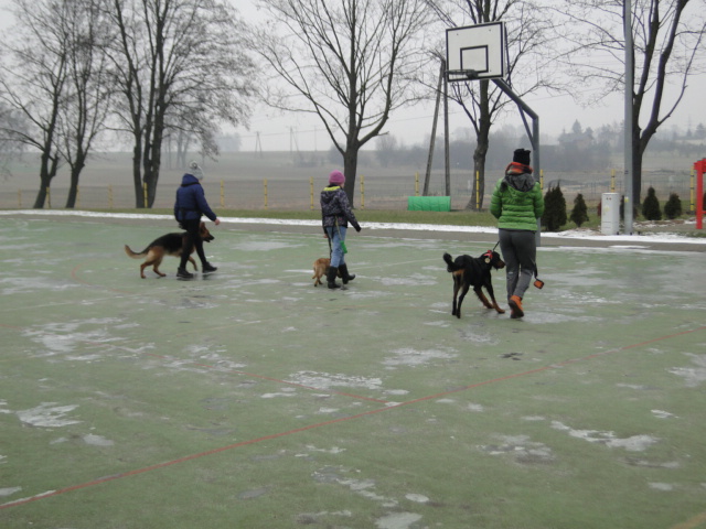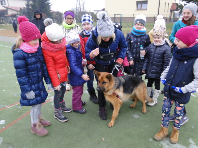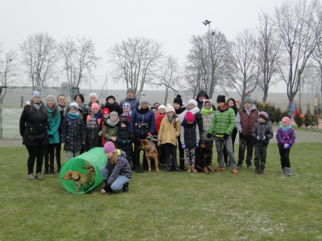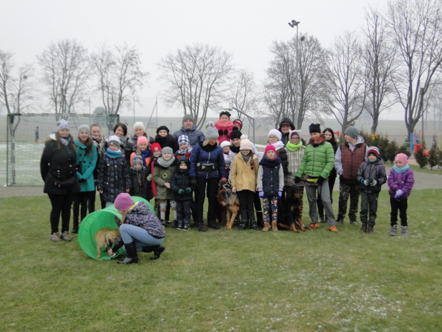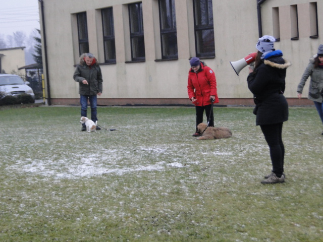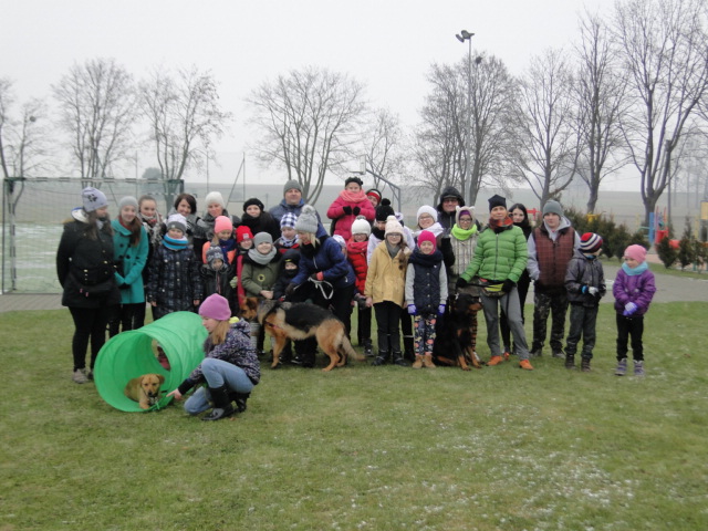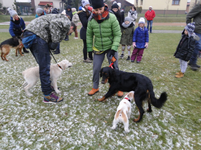 W niedzielę 18 grudnia 2016r. w Zespole Szkolno – Przedszkolnym w Krzyżowicach odbyło się pokazowe szkolenie psów. Przy współpracy pani pedagog – Justyny Zawieruchy z panią Lilą Kazimierską – właścicielką sklepu zoologicznego PERSIK w Żorach oraz panią Agnieszką Głowacką prowadzącą Szkolenia Psów „nad Rudą” w Żorach, na szkolnym boisku uczniowie naszej szkoły wraz z rodzicami mieli okazję zapoznać się z metodami szkoleniowymi psów dorosłych oraz szczeniaków. Prowadząca pokaz, bardzo wiele uwagi poświęciła na omówienie odpowiedniego traktowania psów oraz wprowadziła dzieci w zasady zachowania wobec psów obcych. Wszyscy przybyli na pokaz, mogli na własne oczy zobaczyć efekty takich szkoleń. Pokaz obejmował podstawowe komendy, ale także sztuczki wyuczone u psów przez ich właścicieli. Bardzo cenne były także informacje na temat posiadania elementów odblaskowych, zarówno przez dzieci jak i przez psy (na przykład na obroży czy smyczy). I chociaż pogoda była „pod psem”, to spotkanie dało wszystkim wiele radości. Planujemy kontynuację współpracy i ponowny pokaz w niedługim czasie.