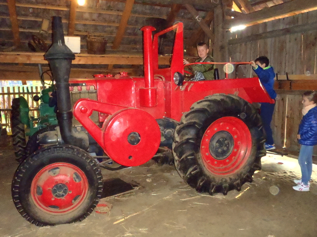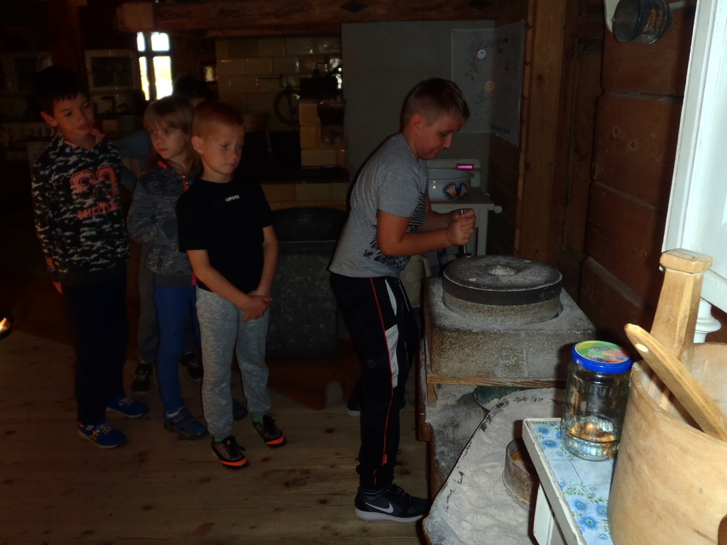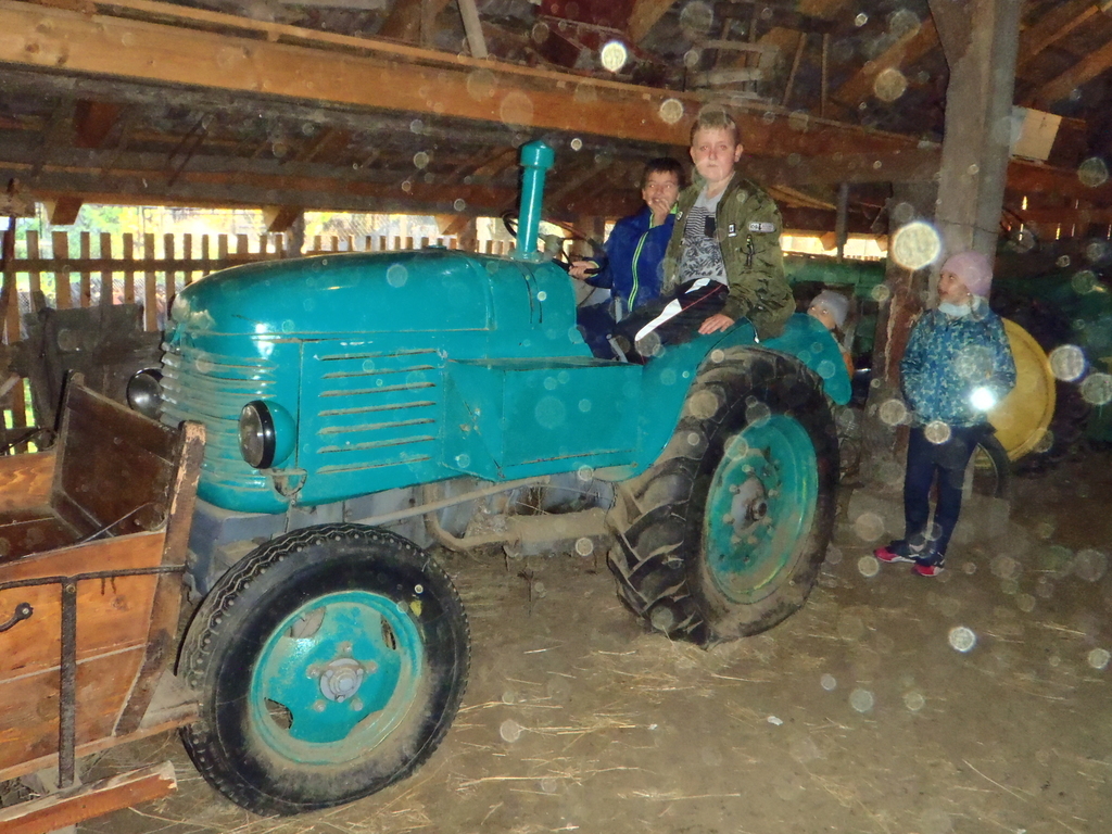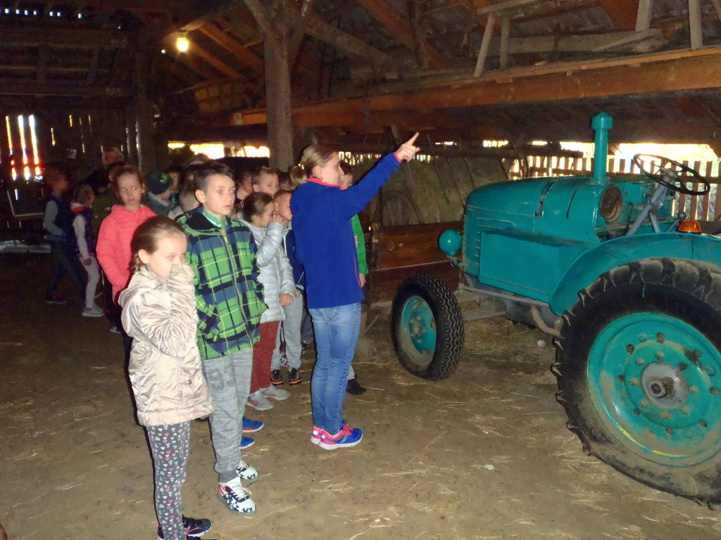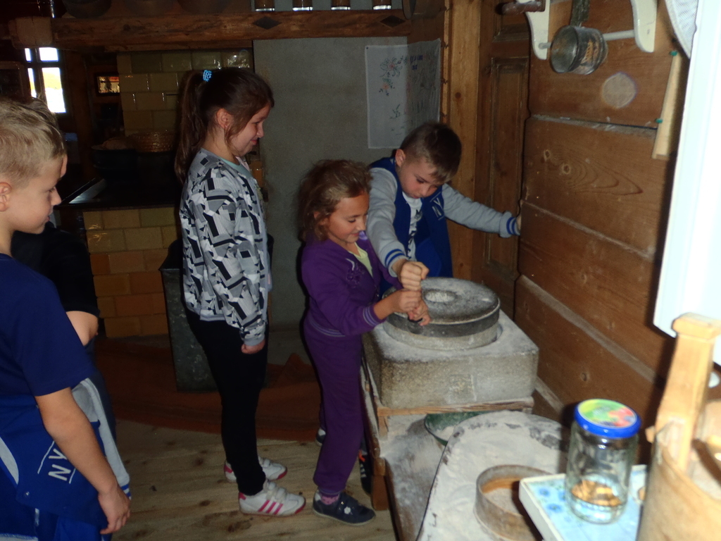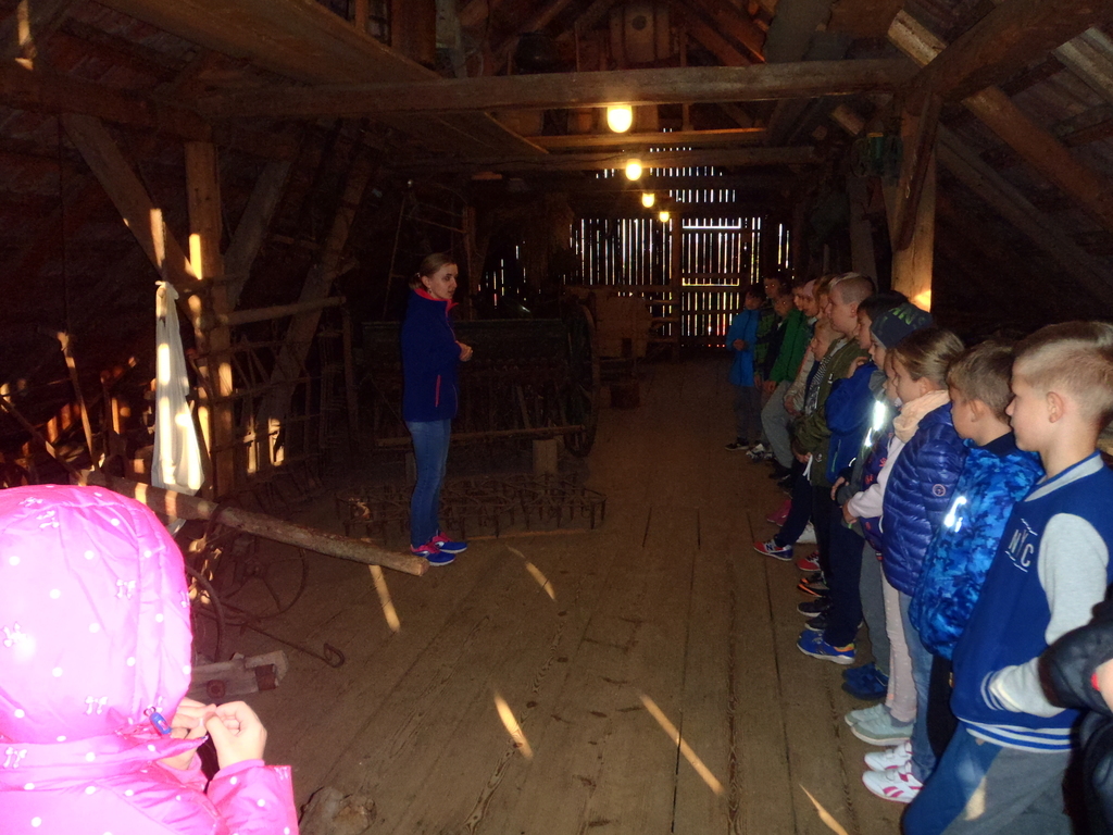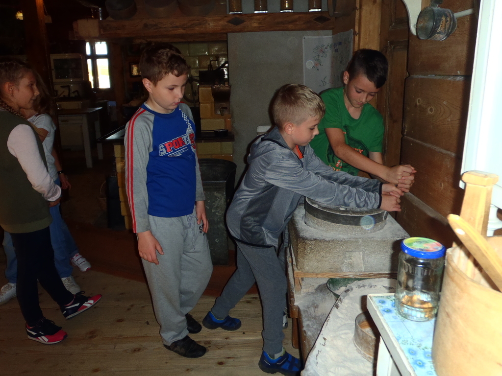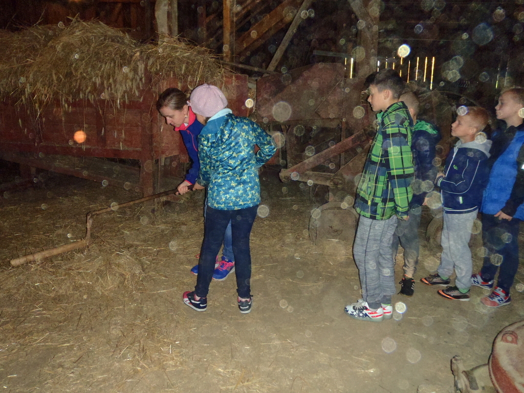 Klasy I, IIIa, IIIb pojechały na wycieczkę w magiczne miejsce. Magiczne, ponieważ, po przestąpieniu progu Chlebowej Chaty w Górkach Małych znaleźliśmy się w kuchni naszej prababci i stodole naszego pradziadka. Były tam żelazka na duszę, żarna, dzieże, karoce, stare maszyny rolnicze i wiele innych, ciekawych przedmiotów. Dzieci poznały drogę "od ziarenka do bochenka" i zajadały się zrobionymi przez siebie podpłomykami, poznały proces wyrobu masła i sera. Same to masło robiły, a potem kosztowały go z podpłomykami i chlebem. Degustacja była pełna, bo to Chata miodem i kawą zbożową słynąca. Dzieci wysłuchały również ciekawostki z życia pszczół. Obok Chaty znajduje się super miejsce na upieczenie kiełbaski, zjedzenie śniadania i na zabawy. A, że pogoda była jak marzenie, to zabawa była na całego.