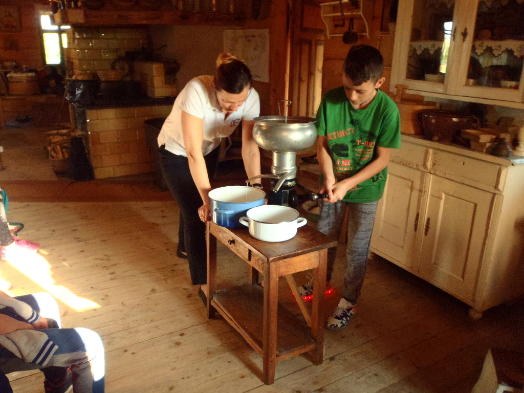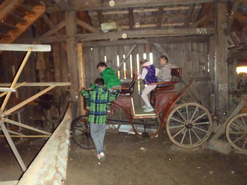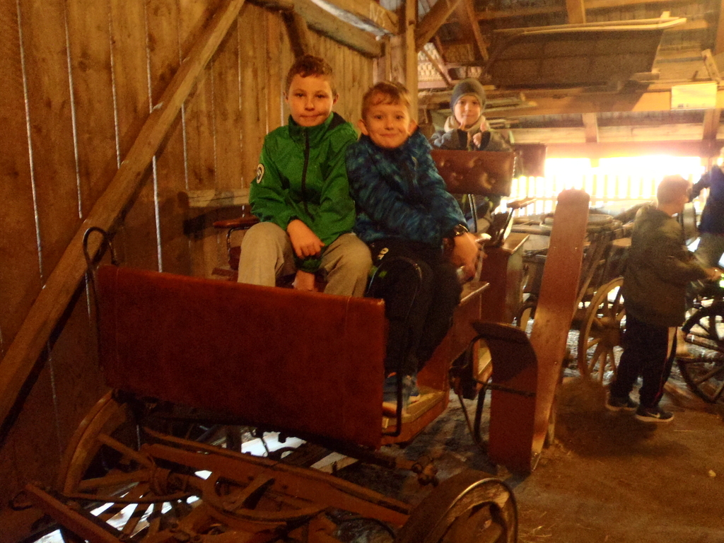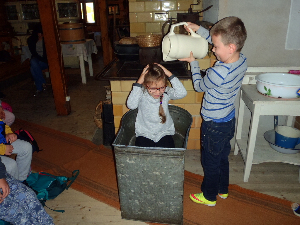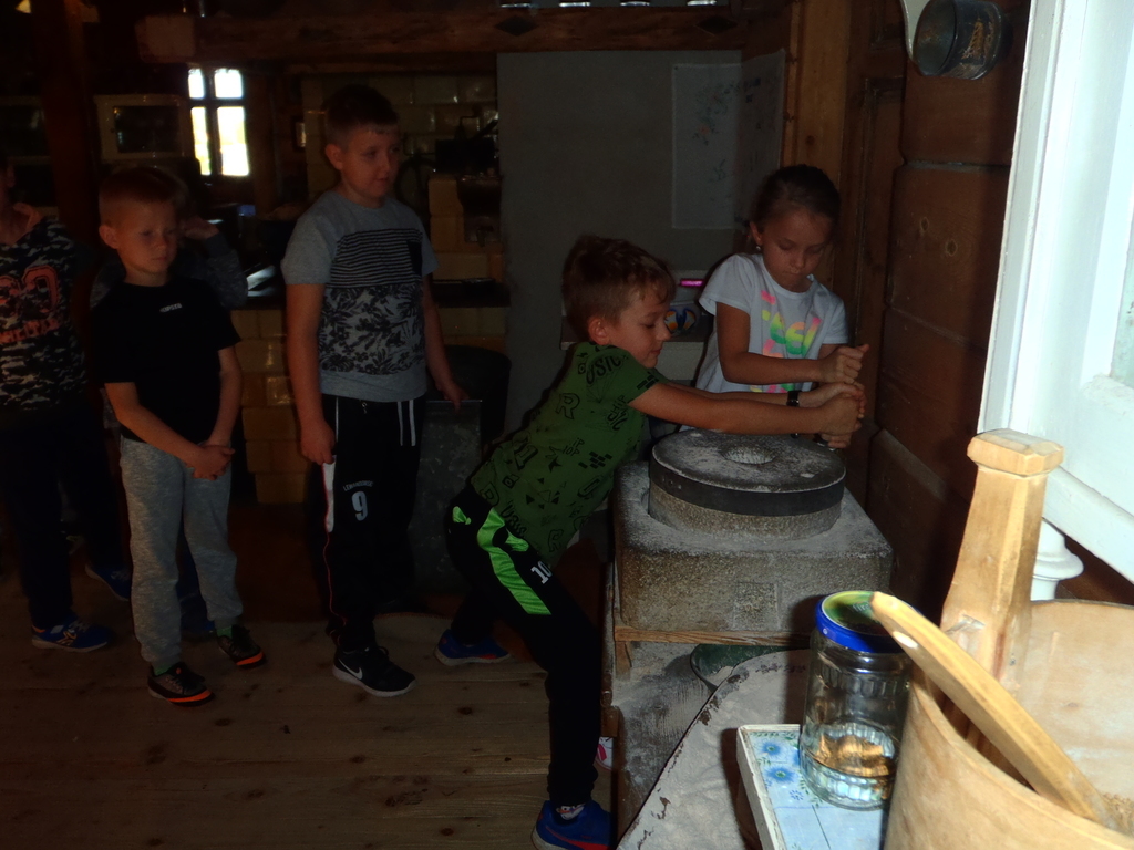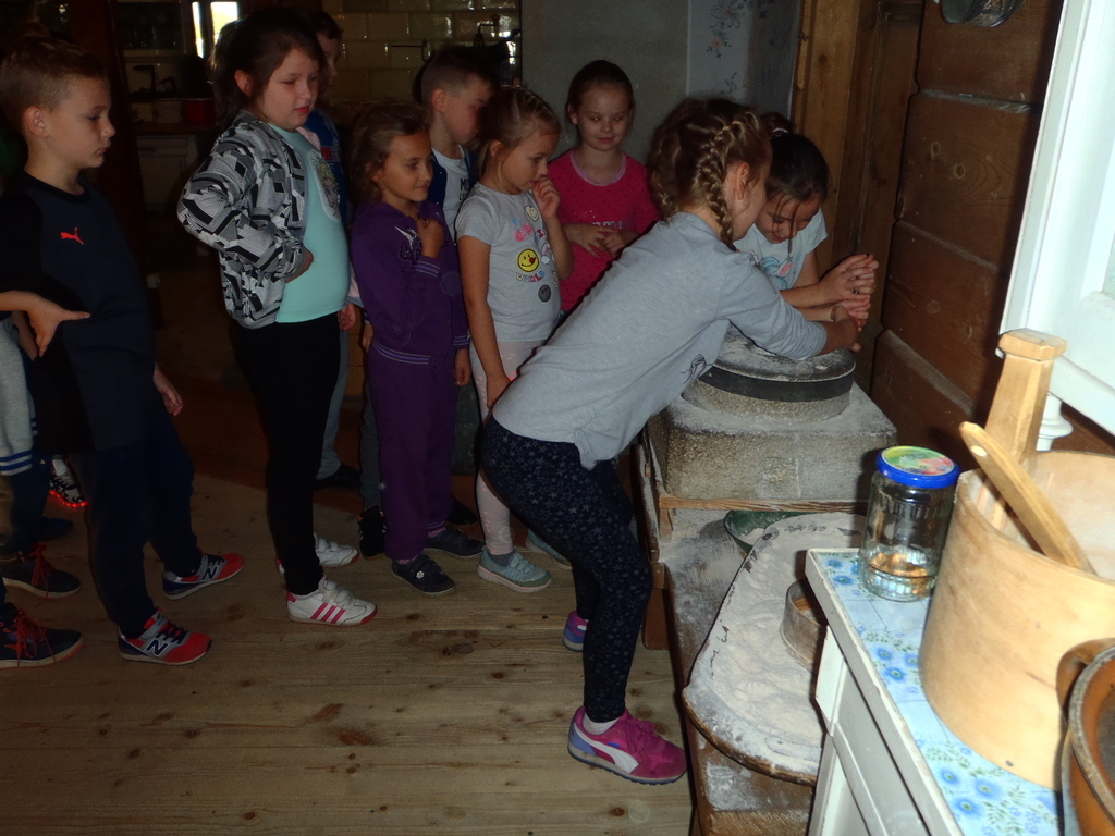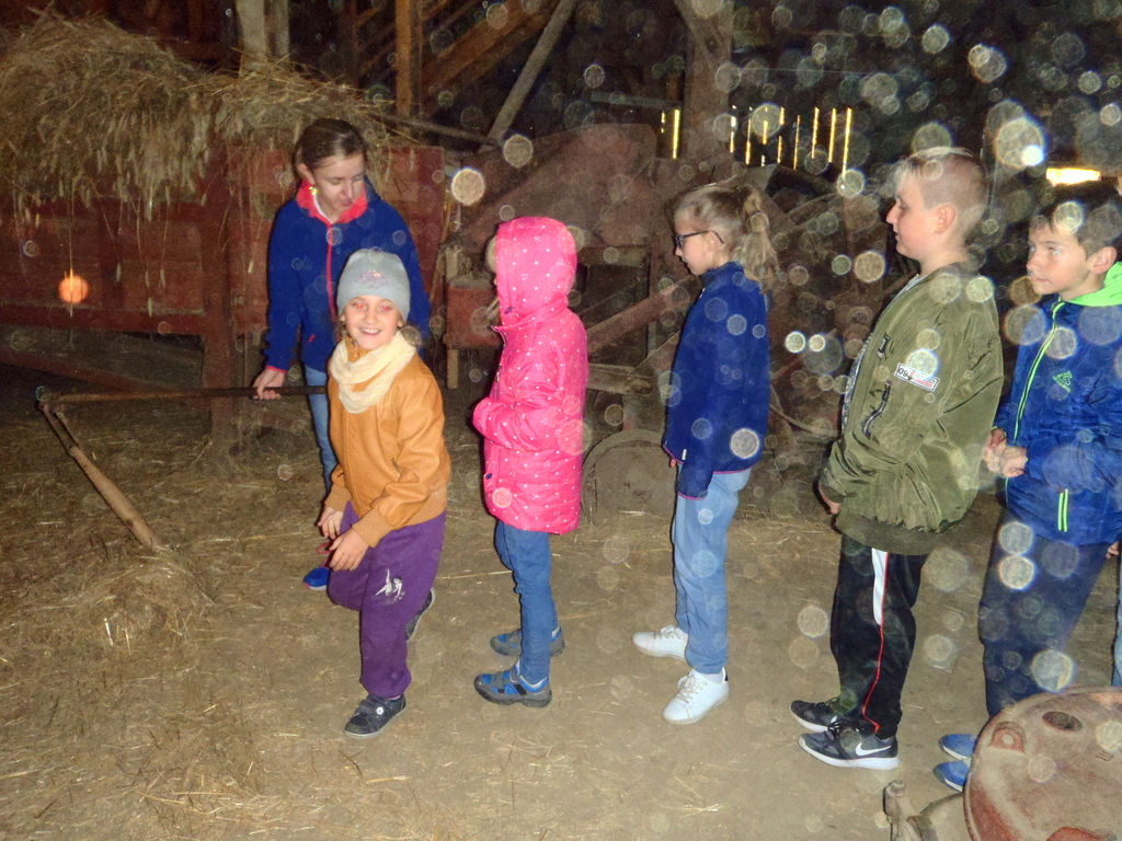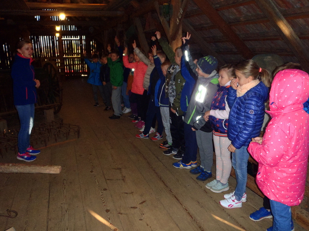 Klasy I, IIIa, IIIb pojechały na wycieczkę w magiczne miejsce. Magiczne, ponieważ, po przestąpieniu progu Chlebowej Chaty w Górkach Małych znaleźliśmy się w kuchni naszej prababci i stodole naszego pradziadka. Były tam żelazka na duszę, żarna, dzieże, karoce, stare maszyny rolnicze i wiele innych, ciekawych przedmiotów. Dzieci poznały drogę "od ziarenka do bochenka" i zajadały się zrobionymi przez siebie podpłomykami, poznały proces wyrobu masła i sera. Same to masło robiły, a potem kosztowały go z podpłomykami i chlebem. Degustacja była pełna, bo to Chata miodem i kawą zbożową słynąca. Dzieci wysłuchały również ciekawostki z życia pszczół. Obok Chaty znajduje się super miejsce na upieczenie kiełbaski, zjedzenie śniadania i na zabawy. A, że pogoda była jak marzenie, to zabawa była na całego.