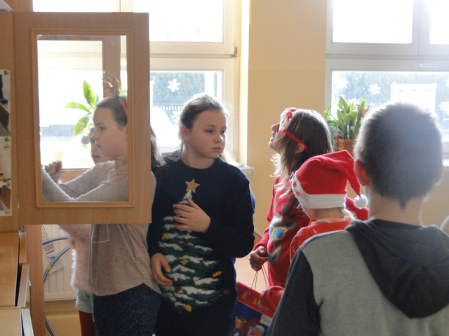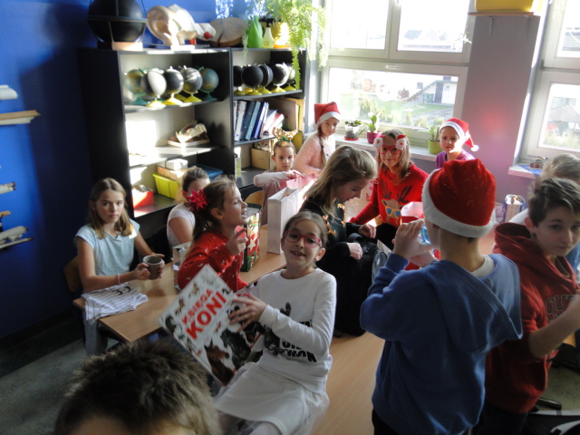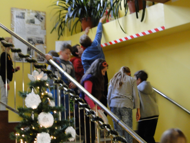 7 grudnia dla uczniów naszej szkoły był dniem pełnym zabawy i ogromu radości. Uczniowie klas I – III z okazji Mikołaja pojechali na wycieczkę do IMAXU i figloraju. Obejrzeli film 3D „Dzika Afryka”, a w Nibylandii po zabawie i poczęstunku spotkali prawdziwego Mikołaja, który szczodrą ręką rozdawał prezenty. Natomiast starsi uczniowie bawili się w „Szukanie Skarbu”. Zabawa polegała na odszukaniu właściwych kapsuł z pytaniami do krzyżówki, której rozwiązane hasło pozwoli na odnalezienie ukrytych mikołajkowych upominków. Każda klasa miała inny przypisany kolor pytań i krzyżówki oraz inne miejsce ukrycia skarbu. Wszyscy świetnie się bawili, zarówno uczniowie jak i wychowawcy klas, którzy również uczestniczyli w zabawie.
