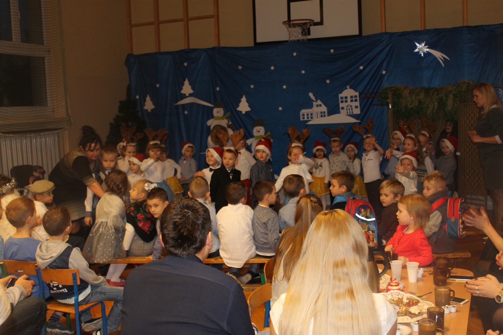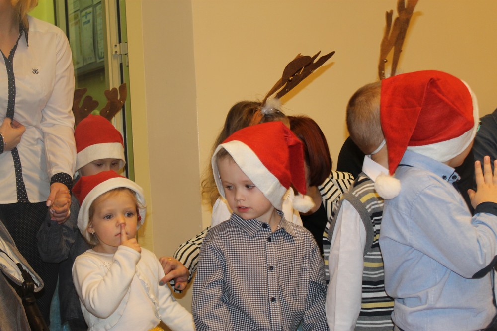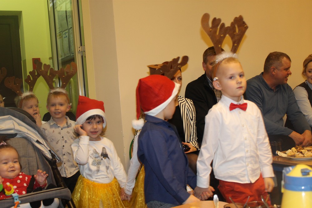 Święta to pora życzeń, a więc z życzeniami wszystkie przedszkolaki stanęły przed Rodzicami. Pierwszej Gwiazdki szukały i wspaniały występ przygotowały.