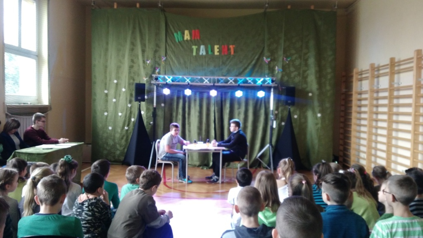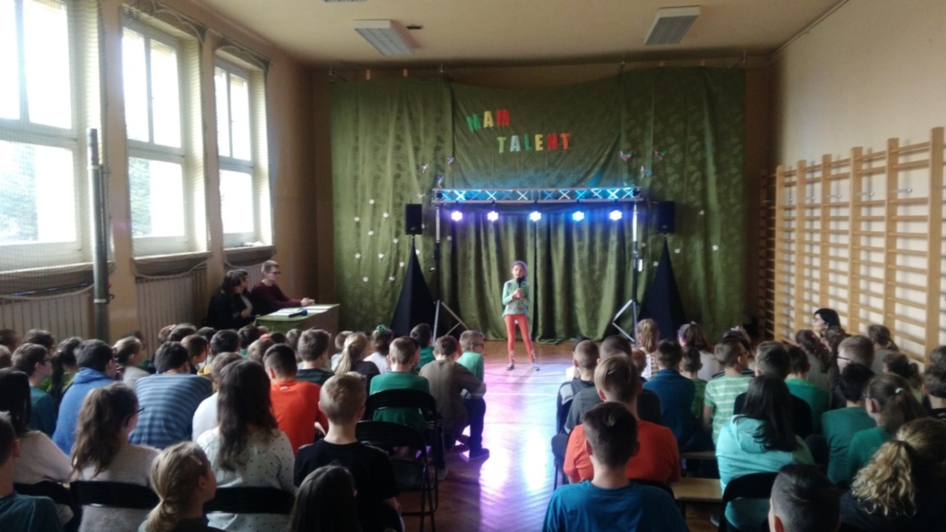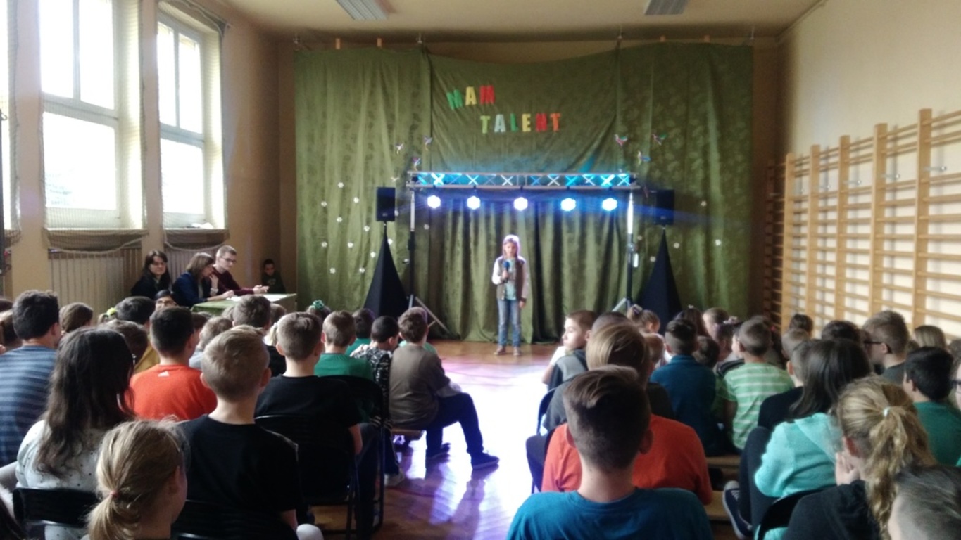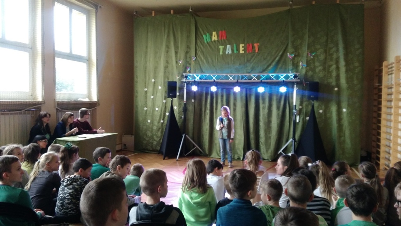 W naszej szkole odbyła się I edycja Szkolnego Konkursu „Mam Talent”. Chętni uczniowie z klas I-VII zaprezentowali swoje umiejętności wokalne, taneczne i kabaretowe przed całą społecznością szkolną. W szranki stanęło ze sobą 22 uczestników.