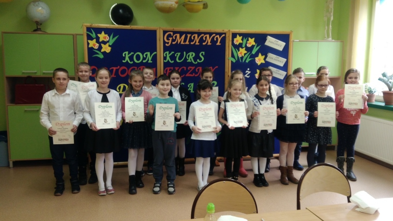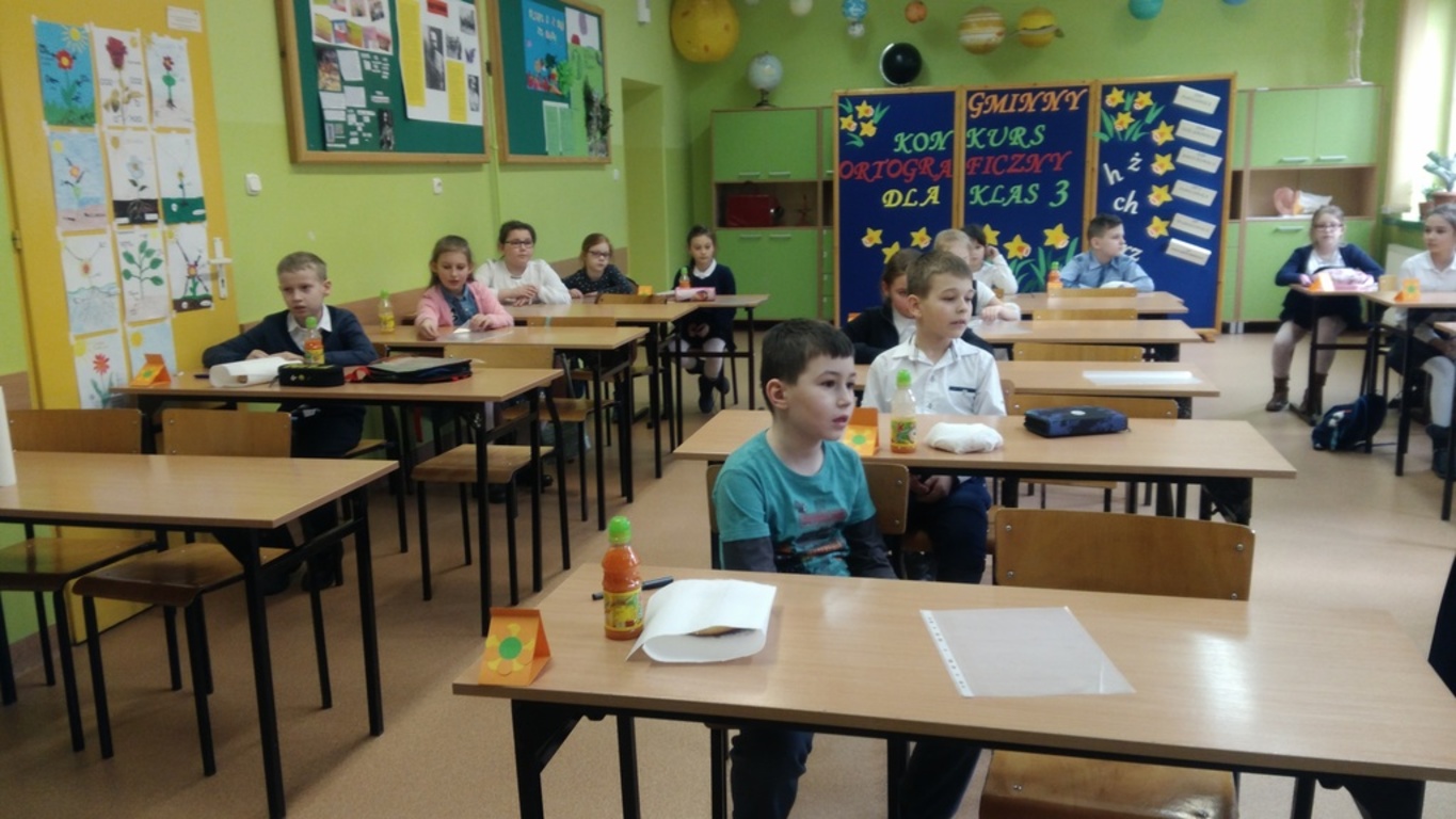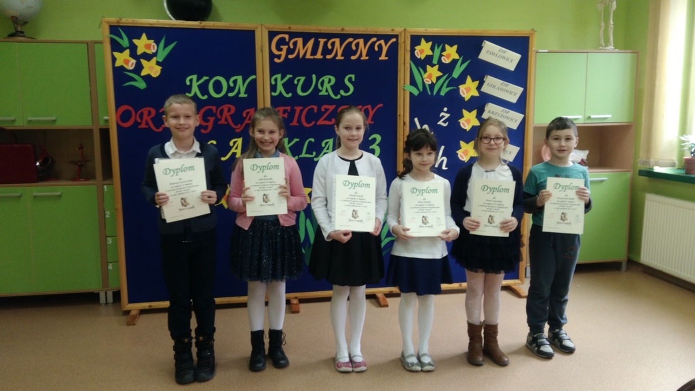 W szkole w Warszowicach został zorganizowany Gminny Konkurs Ortograficzny. Naszą szkołę reprezentowała Julia Kowalik z klasy 3a i Krzysztof Dudek z klasy 3b. Z wielką przyjemnością zawiadamiamy, że nasi uczniowie zdobyli czołowe miejsca. Krzyś zajął I miejsce, a Julka II miejsce. Trzeba przyznać, że dyktando było długie i mogłoby sprawić kłopot niejednemu gimnazjaliście. Na dalszym etapie konkursu Krzyś będzie reprezentował naszą gminę. Gratulujemy i życzymy dalszych sukcesów.