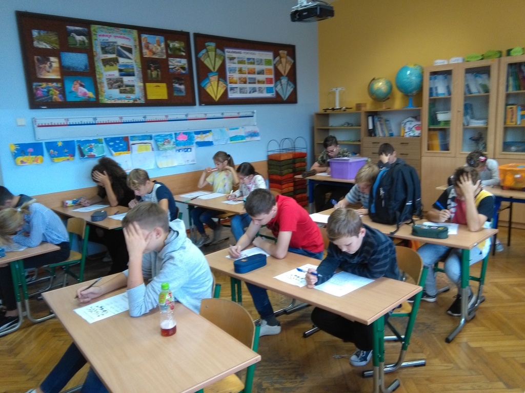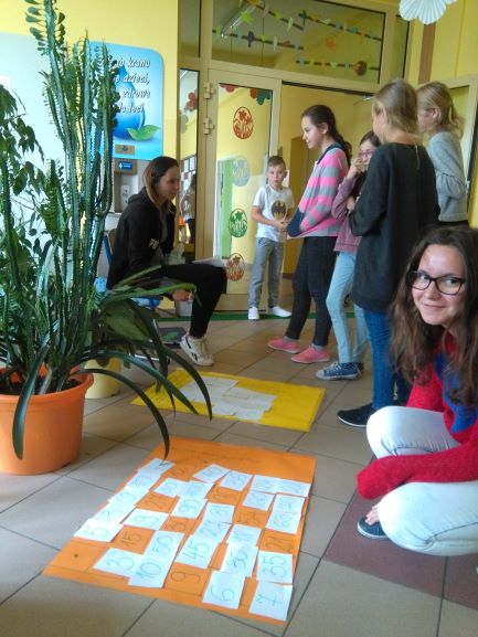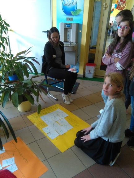 Na drugiej lekcji asystenci koordynatorów przeprowadzali testy dla chętnych uczniów, przechodząc po salach z koszykiem zadań z tabliczką mnożenia. Egzaminowany uczeń wybierał zadanie z koszyka i rozwiązywał przykłady wpisując prawidłowe wyniki mnożenia i dzielenia. 67 uczniów wzięło udział w egzaminie, a 33 zdało go pozytywnie i zostało ekspertami tabliczki mnożenia, za co otrzymali słodkie niespodzianki i medale.