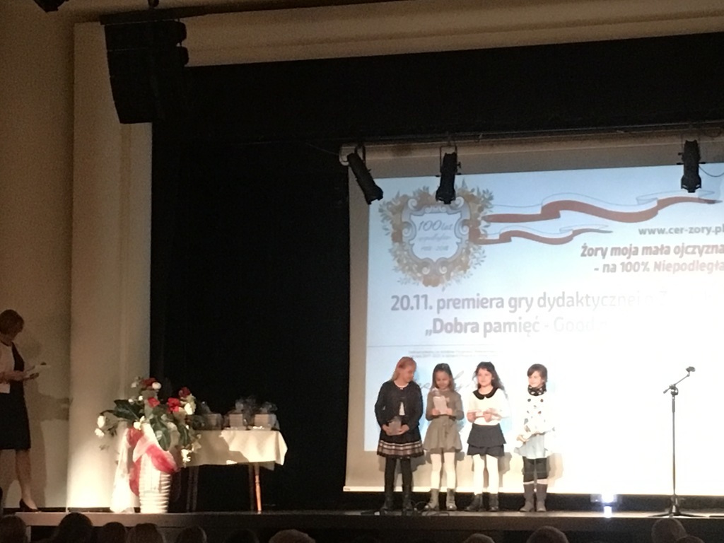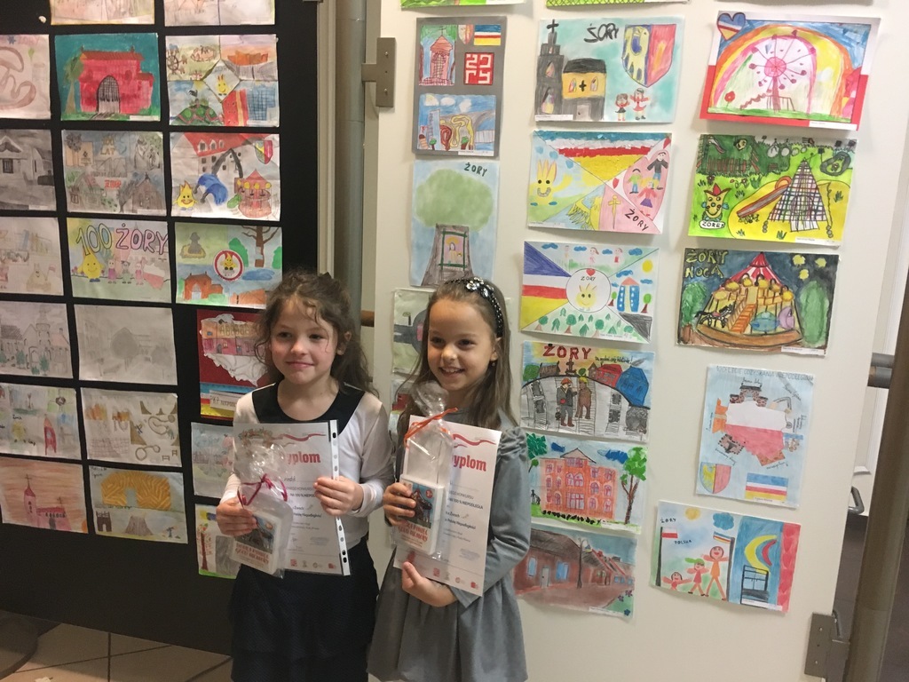 Uczennice klasy pierwszej i drugiej naszej szkoły wzięły udział w Wojewódzkim Konkursie „Żory – moja mała ojczyzna na 100% niepodległa – 100 widokówek, 100 zagadek i 100 wierszy o Żorach”. W MOK w Żorach odbyła się uroczysta Gala, podczas której zostały wręczone dyplomy oraz nagrody.