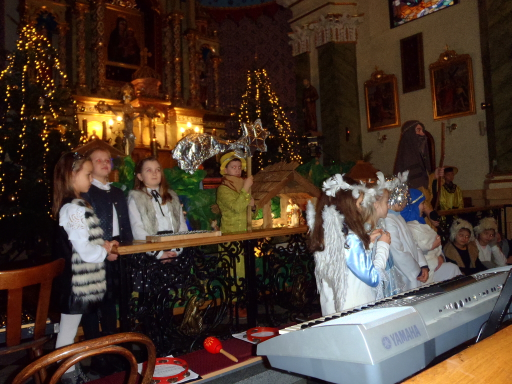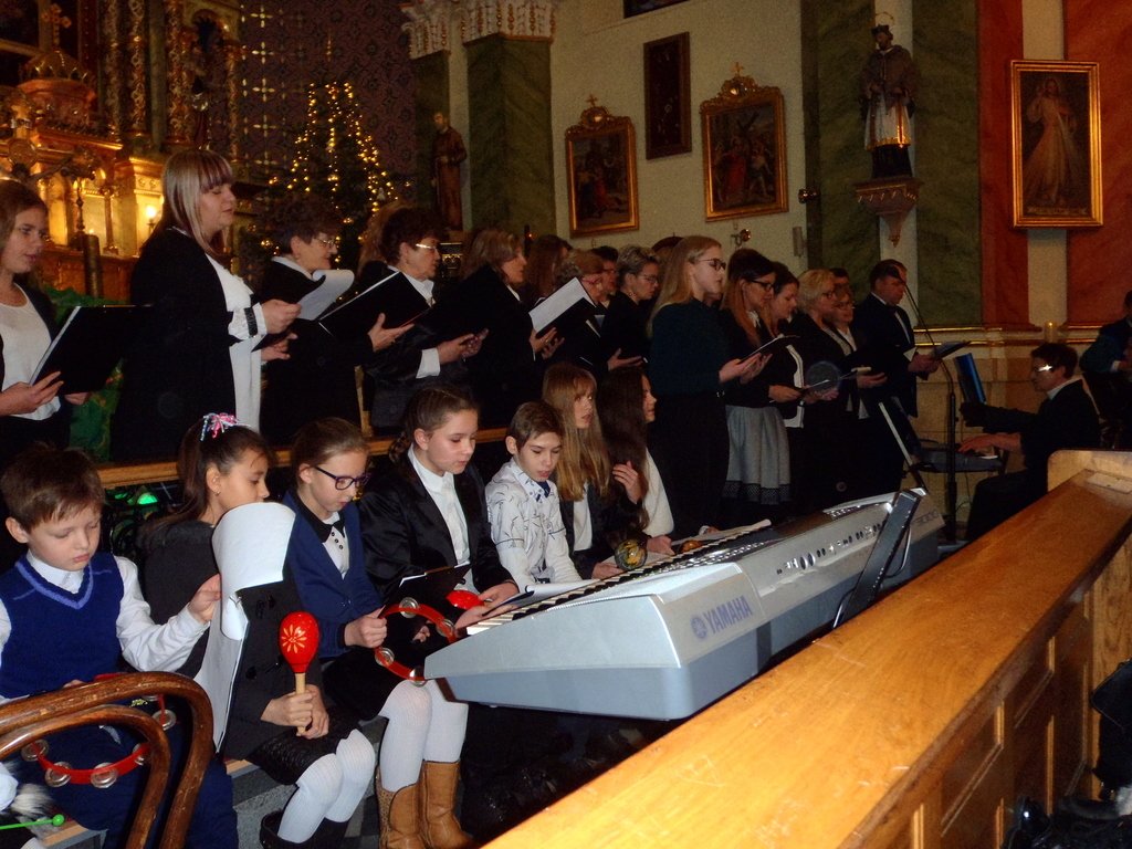 W ostatnią niedzielę mieliśmy niecodzienne wydarzenie. W naszym kościele wystąpiły przedszkolaki, młodsze i starsze dzieci szkolne pod kierunkiem Pani katechetki i chór szkolny pod kierownictwem Pani Baron. Przedszkolaki, które przygotowywały Panie Drozdziok i Tlołka, odważnie, bez tremy, z wdziękiem zaśpiewały pastorałki. A na koniec chór dorosłych przepięknie odśpiewał świąteczne piosenki, kolędy. Aż żal, że tak krótko to wszystko trwało. To, co widzieliśmy i usłyszeliśmy było efektem pracy nauczycieli, wielotygodniowych prób i przygotowań uczestników. Wszystkim bardzo serdecznie gratulujemy i dziękujemy. Zaś szczególne podziękowania należą się Pani Łucji Krentosz. Za to, że po prostu była.